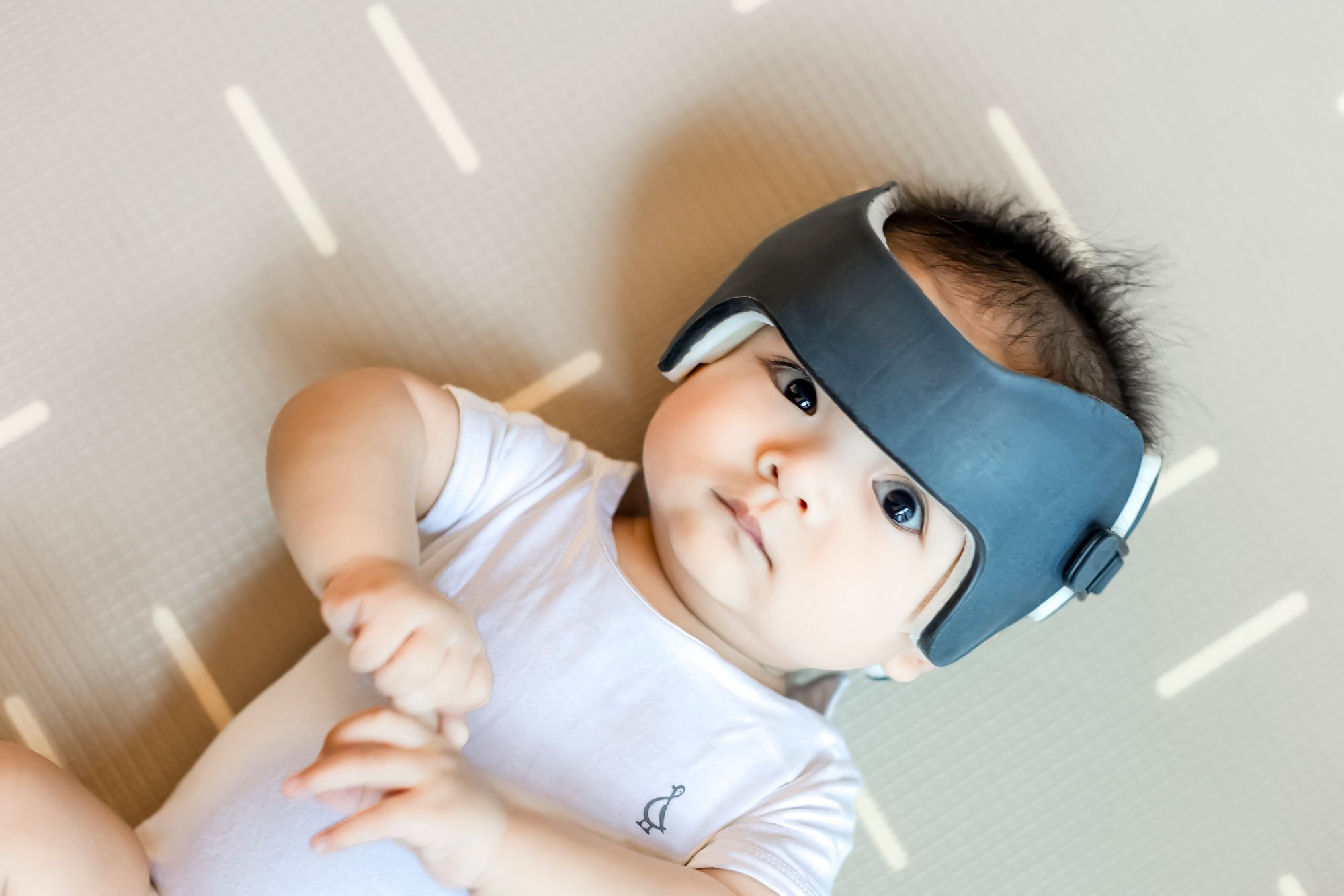 The helmet redirects head growth to encourage symmetry without squeezing the baby's head, ensuring babies remain happy during treatment.